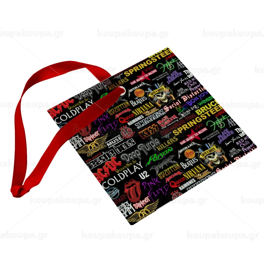 Rock Bands, Christmas ornament, glass square ornament 9x9cm