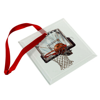 Basketball, Christmas ornament, glass square ornament 9x9cm