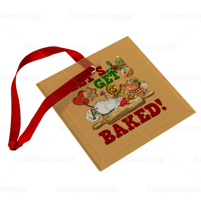 Let's get baked, Christmas ornament, glass square ornament 9x9cm