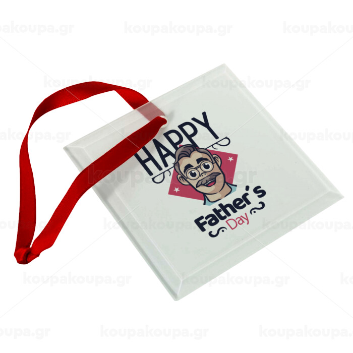 Για την γιορτή του μπαμπά!, Christmas ornament, glass square ornament 9x9cm