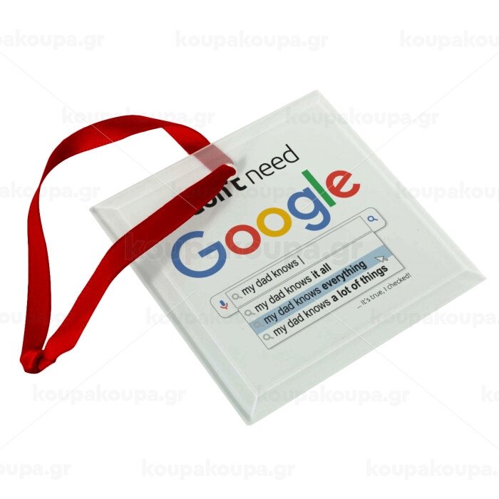 I don't need Google my dad..., Christmas ornament, glass square ornament 9x9cm