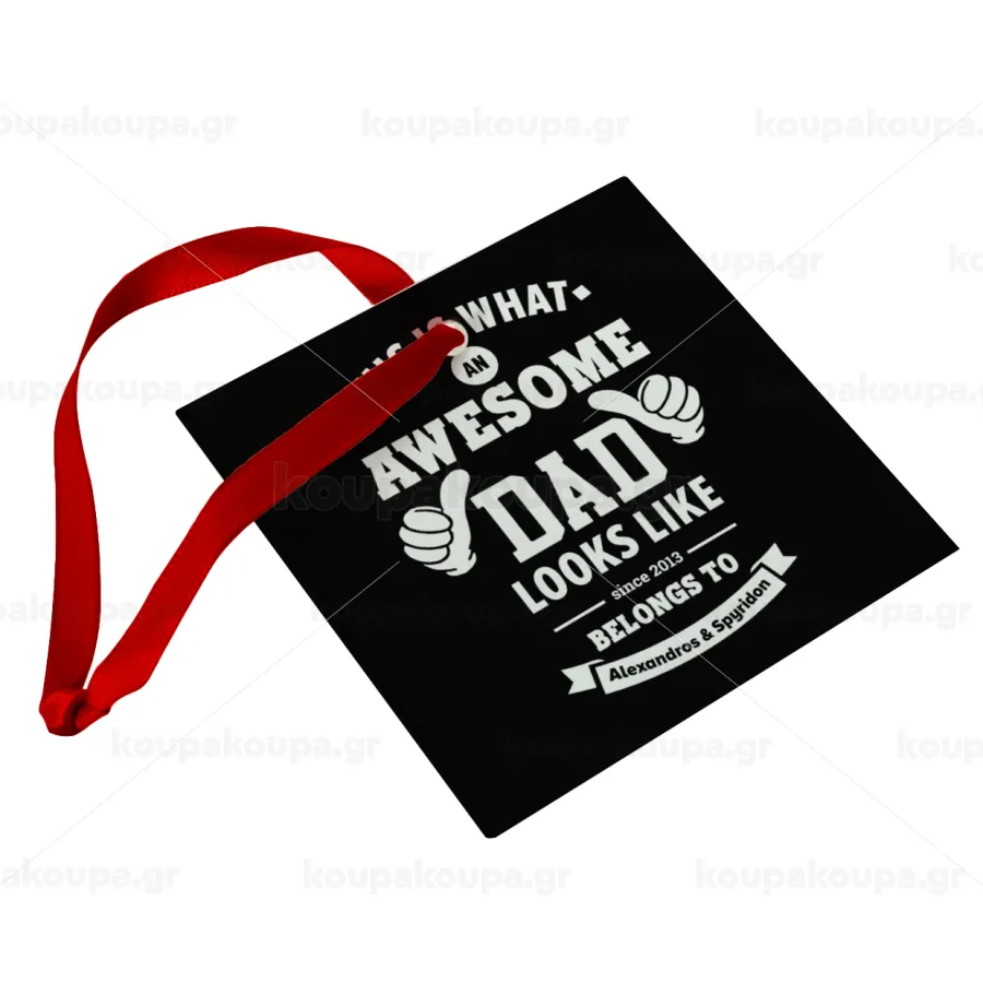 This is what an Awesome DAD looks like, Christmas ornament, glass square ornament 9x9cm