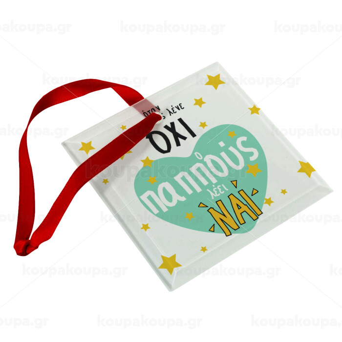 Όταν οι γονείς λένε ΟΧΙ, ο παππούς λέει ΝΑΙ, Christmas ornament, glass square ornament 9x9cm