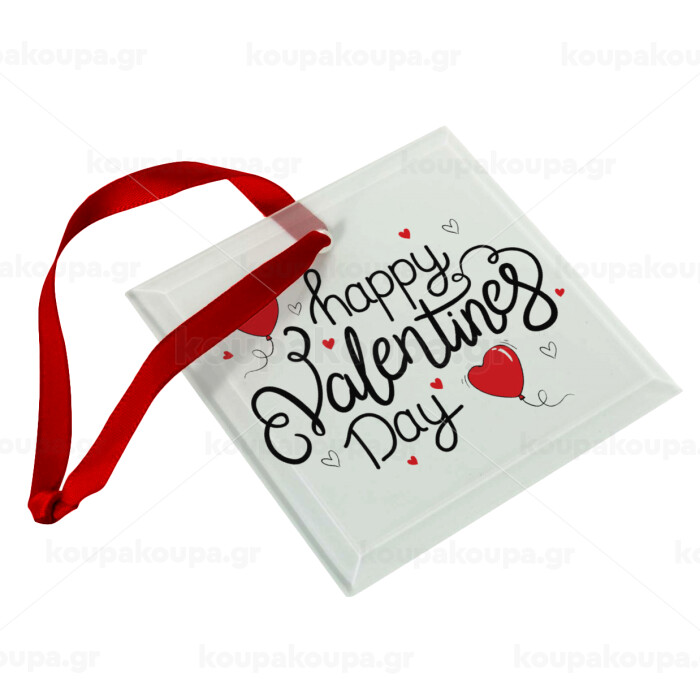 Happy Valentines Day!!!, Christmas ornament, glass square ornament 9x9cm