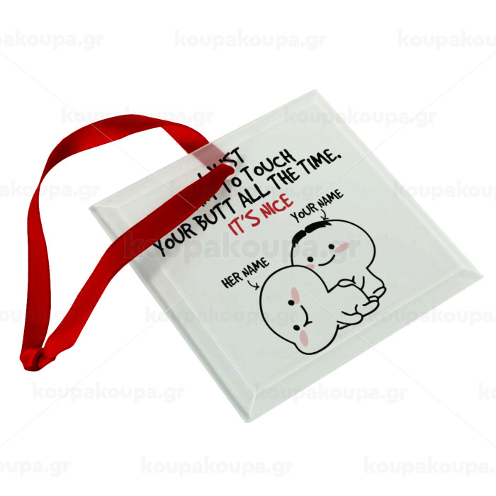 I Just Want To Touch Your Butt All The Time, Christmas ornament, glass square ornament 9x9cm