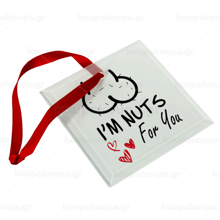 I'm Nuts for you, Christmas ornament, glass square ornament 9x9cm