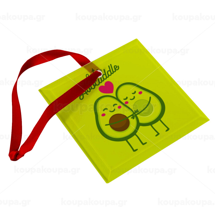 Let's avocuddle, Christmas ornament, glass square ornament 9x9cm