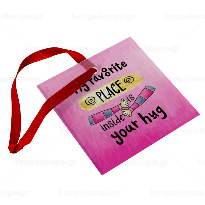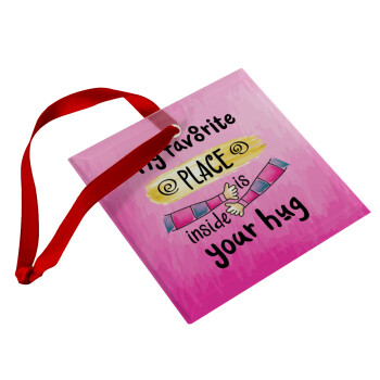 My favorite place is inside your HUG, Christmas ornament, glass square ornament 9x9cm