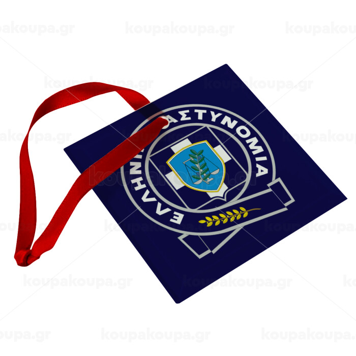 Ελληνική Αστυνομία, Christmas ornament, glass square ornament 9x9cm