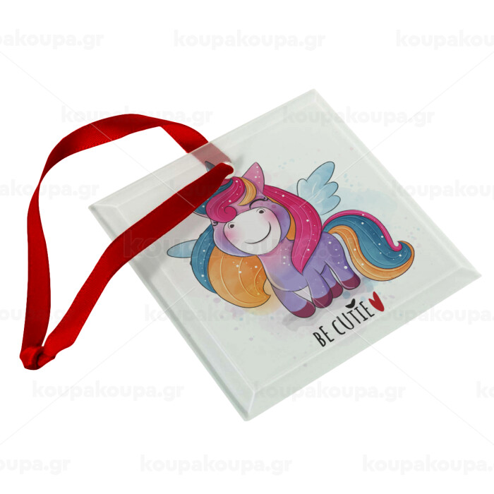Cute unicorn, Christmas ornament, glass square ornament 9x9cm