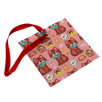 Cats and Fishes, Christmas ornament, glass square ornament 9x9cm