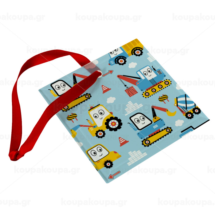 Toy car, Christmas ornament, glass square ornament 9x9cm