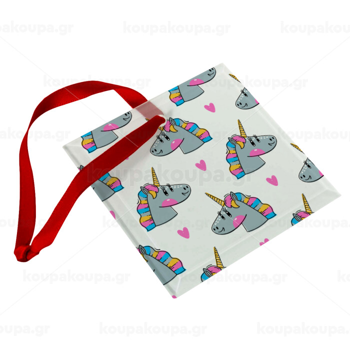 Unicorn, Christmas ornament, glass square ornament 9x9cm