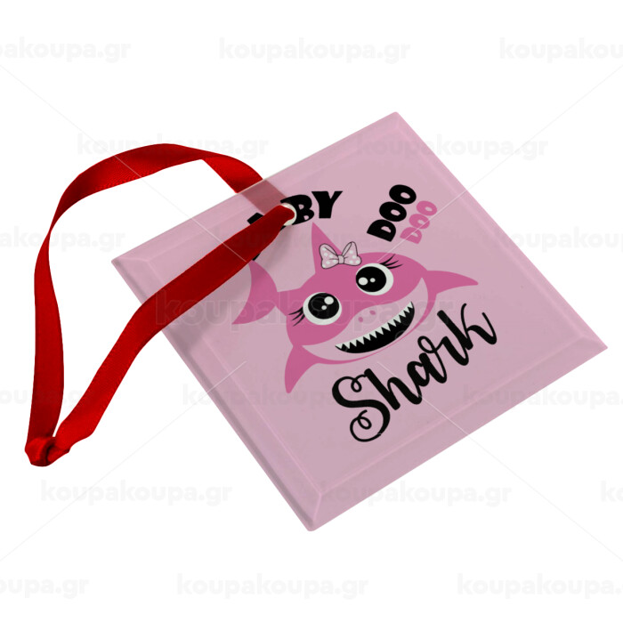 Baby Shark (girl), Christmas ornament, glass square ornament 9x9cm