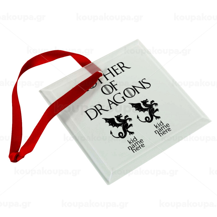 GOT, Mother of Dragons (με ονόματα παιδικά), Christmas ornament, glass square ornament 9x9cm