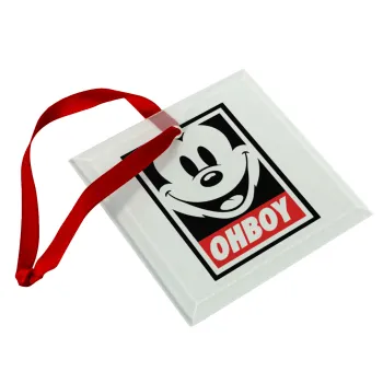 Oh boy μίκυ, Christmas ornament, glass square ornament 9x9cm
