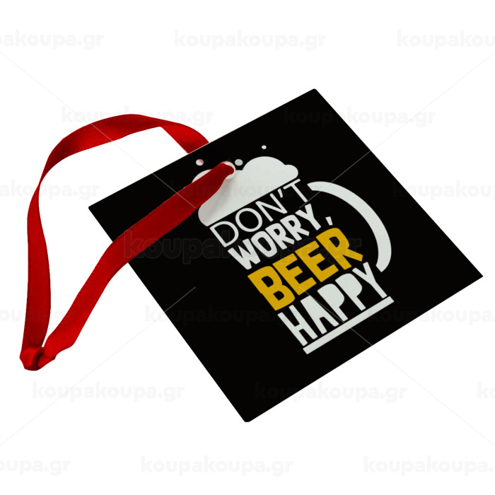 Don't worry BEER Happy, Μπρελόκ Ξύλινο τετράγωνο MDF
