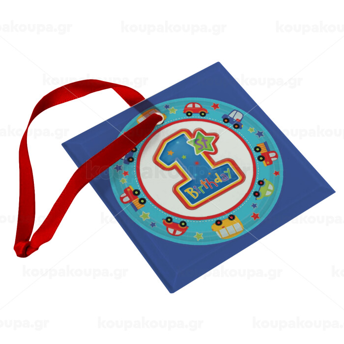 Happy 1st Birthday, Μπρελόκ Ξύλινο τετράγωνο MDF