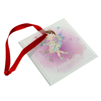 Η νονά μου, Νεράϊδα, Christmas ornament, glass square ornament 9x9cm