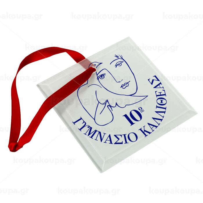 Σχολικό σήμα κορδέλα, Christmas ornament, glass square ornament 9x9cm