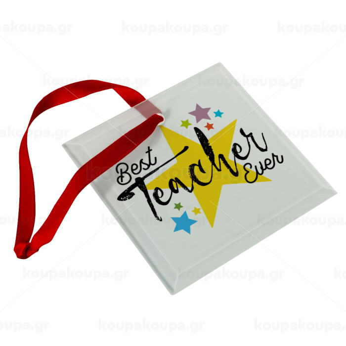 Η καλύτερη δασκάλα, Christmas ornament, glass square ornament 9x9cm