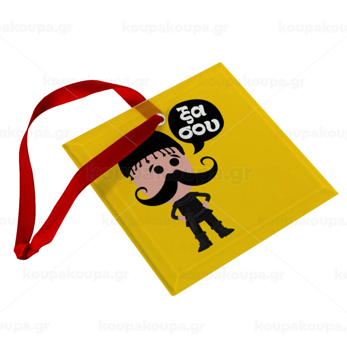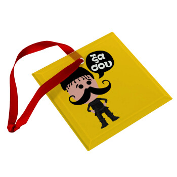 Κρητικός "Ξα σου", Christmas ornament, glass square ornament 9x9cm