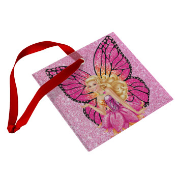 A fairy Barbie, Christmas ornament, glass square ornament 9x9cm