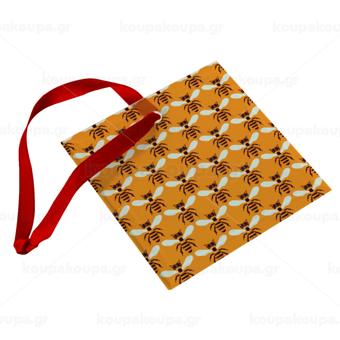 Bee, Christmas ornament, glass square ornament 9x9cm