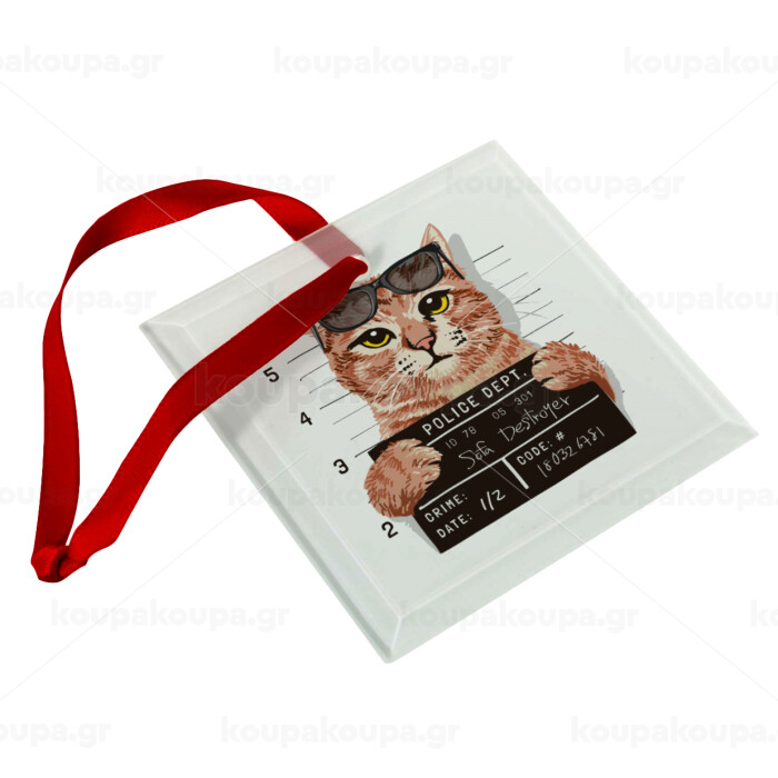 Cat cracked, Christmas ornament, glass square ornament 9x9cm
