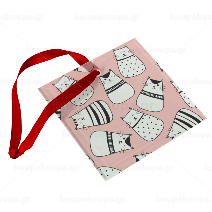 Cute cats, Christmas ornament, glass square ornament 9x9cm