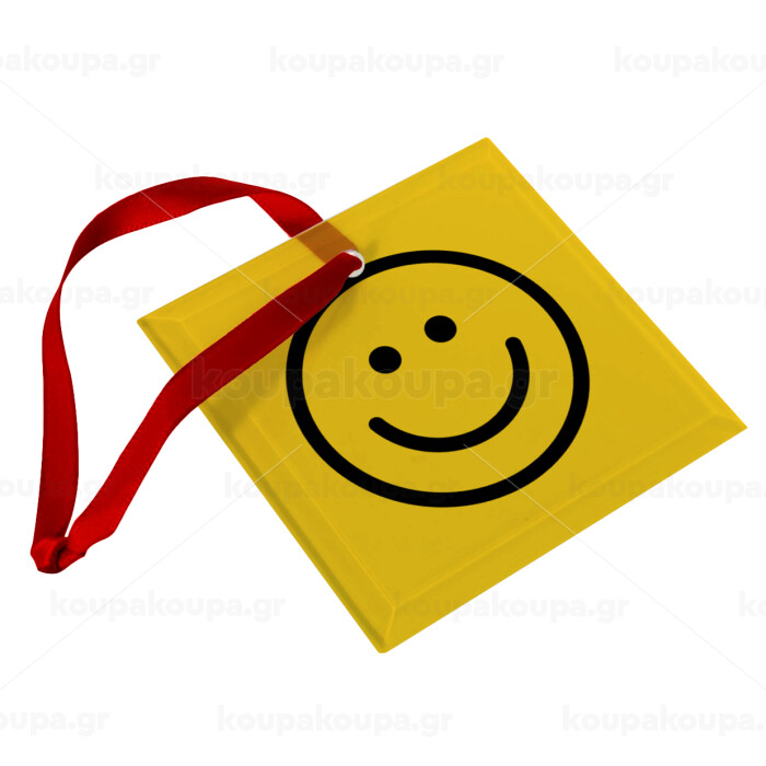 Χαμόγελο , Christmas ornament, glass square ornament 9x9cm