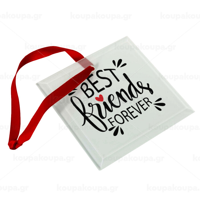 Best Friends forever, Christmas ornament, glass square ornament 9x9cm
