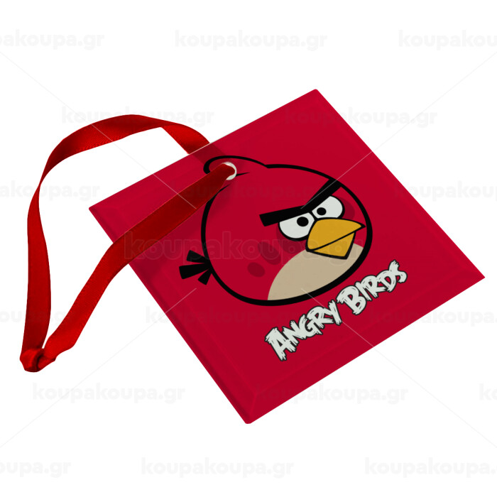 Angry birds Terence, Christmas ornament, glass square ornament 9x9cm