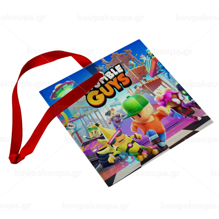 Stumble Guys, Christmas ornament, glass square ornament 9x9cm