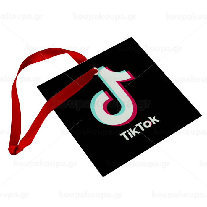 TikTok, Christmas ornament, glass square ornament 9x9cm