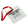 Happy girls are the prettiest, Christmas ornament, glass square ornament 9x9cm