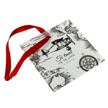 To travel is to live, Christmas ornament, glass square ornament 9x9cm