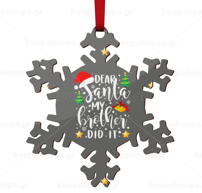 Dear santa my Brother did it, Christmas ornament wooden snowflake 9cm