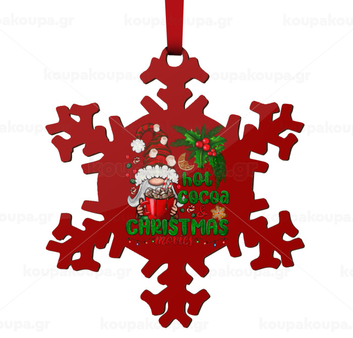 Hot cocoa and Christmas movies, Christmas ornament wooden snowflake 9cm