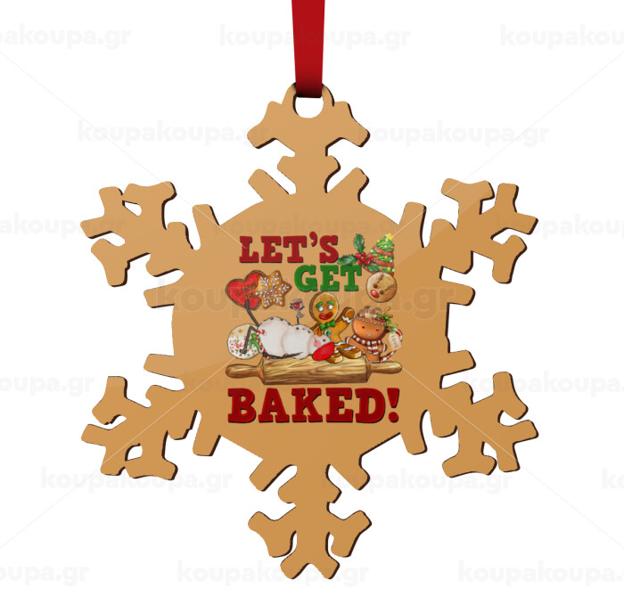 Let's get baked, Christmas ornament wooden snowflake 9cm